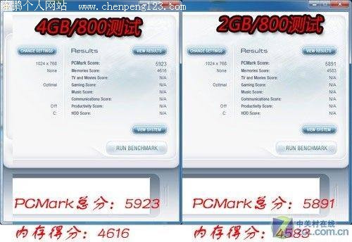 另外就是如果升级到4GB DDR2-800双通道后,对于系统性能又有哪些提升呢?上图就是PCMark基准测试,可以很好的反映出系统的性能。通过对比,我们发现双通道4GB内存确实对性能又提升,但是幅度偏小,有些得不偿失。所以就目前而言,2GB内存仍然可以满足普通用户的需求,所以建议老用户不要盲目升级。