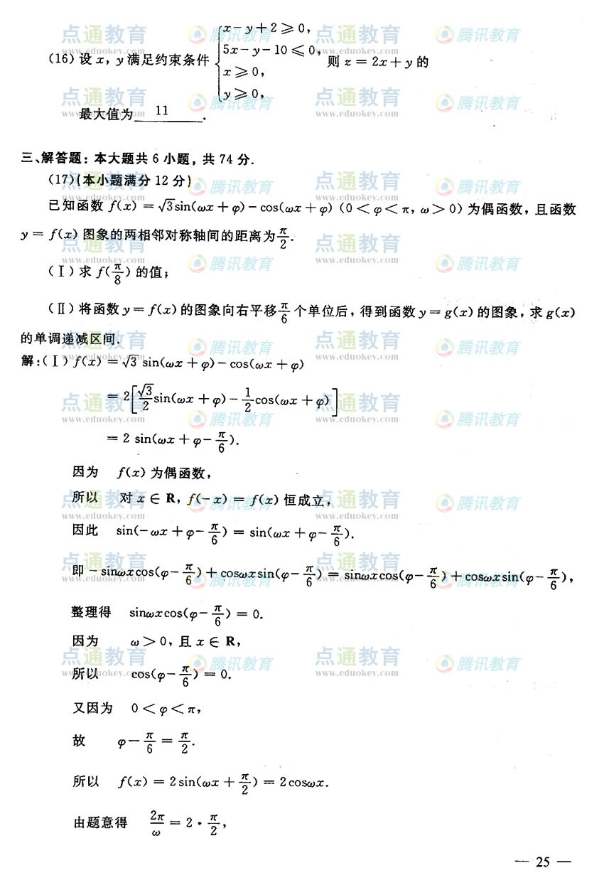 08高考山东数学理试题答…
