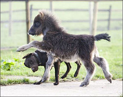 01“拇指姑娘”只有43厘米高,当与一匹普通大马站在一起的时候,它就像是一只小狗。