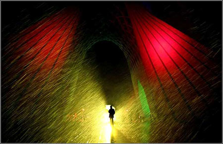 走在严寒中:2月7日,伊朗首都德黑兰的Azadi广场,一位妇女走在寒冬的风雪中。