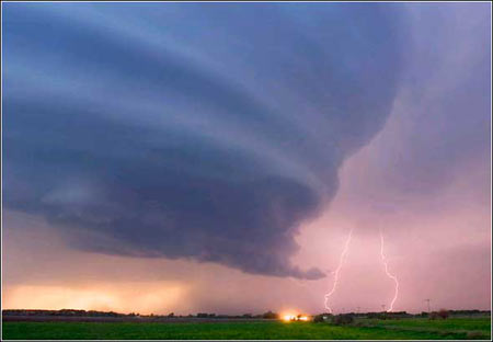 旋转的大麻烦:5月11日,一连串的雷暴“超级细胞”逼近内布拉斯加州格瑞德岛市。当局发布了数个龙卷风警报,无人受伤。