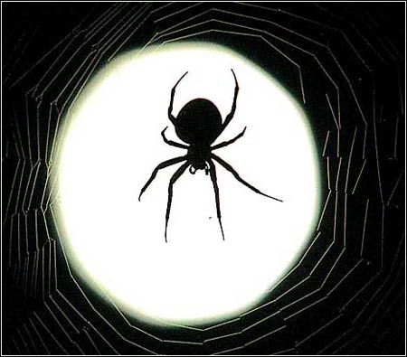 猎人的月亮:10月14日,加利福尼亚。一只蜘蛛在满月下的蛛网上等待食物的到来。