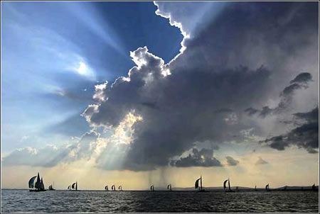 平稳的航行:9月13日,航行在匈牙利中部巴拉腾湖中的帆船。
