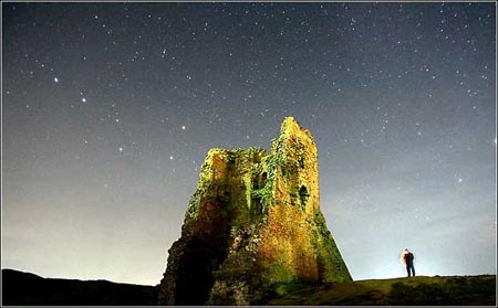 星辰闪耀:10月22日,白俄罗斯明斯克以西150公里的新格鲁多克,群星点缀的天空下,中世纪堡垒的遗迹仿佛也被照。