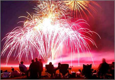 耀眼的烟火:7月4日,美国怀俄明州,数千名观众观看了这里的烟火表演