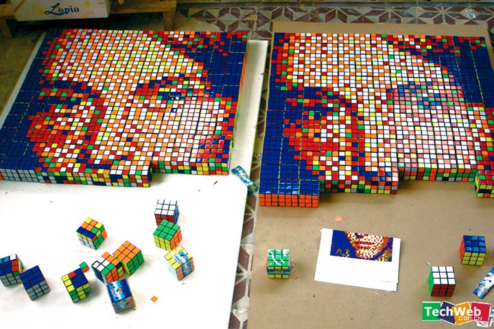 难得的是每个魔方都需要调到所用颜色点的样子,花费的功夫可想而之。