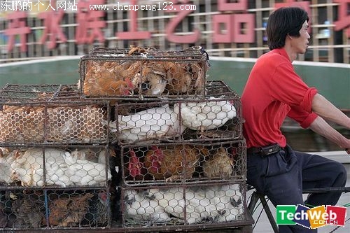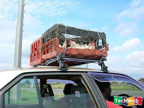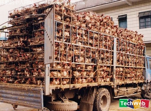 中国另一处,铁笼运鸡,很常见。