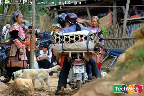 越南的另一地点,同样是摩托车,多了个竹筐。