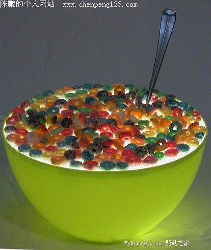 又是一个会发光的,不过这次是放在碗里的谷类食品,而且只需碰一下汤匙。它叫“Froot Loop”。小心别真给吃了。