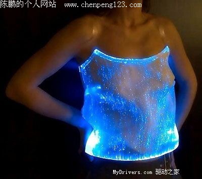 巴黎著名设计师LumiGram的杰作。利用最新的视觉光纤织物技术打造了与传统概念迥异的高级时装与家居配件,不仅仅是女人的背包、发夹、皮带、衣服可以发出漂亮的光,就连家里的靠垫、桌布、地毯都可以在黑夜里闪耀眩目的色彩。