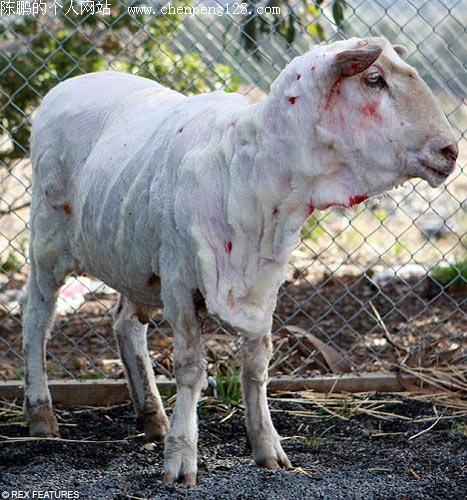 据国外媒体报道,在澳大利亚墨尔本有一只绵羊三年没有修剪羊毛,现在它的羊毛“外套”开始变成它的负担。虽然目前的修剪价格会让它的主人愁眉不展,但是在外界的压力下他也不得不为这只不幸的绵羊“理发”。