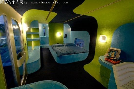 一间房酒店这一创意来自瑞士艺术家二人组L/B(萨比娜.朗和丹尼尔.鲍曼),他们以善于处理建筑与空间的关系、促进参观者融入其中而闻名。一间房酒店顾名思义,只有一间客房,包括一个卫生间、一张超大号床和一个休闲室,空间宽敞,还体现了酒店所能代表的个人梦想:建筑、独具匠心的细节设计。有意思的是,可以“偷”酒店里的金饰边浴巾作为纪念。