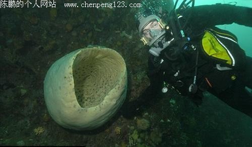 研究小组成员在冰冷海水下发现一个巨大的海绵