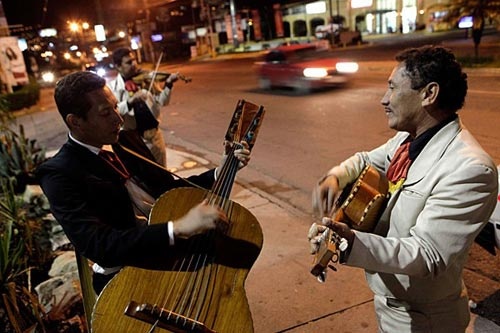 世界上最让人快乐的10个地方有9个都在拉丁美洲,这是为什么呢?因为计算指数不仅包括人的欢乐,还包括当地的生态状况,即一个地方的可持续发展性。洪都拉斯的居民普遍寿命较长,碳排放少。这幅图片就是洪都拉斯的一个乐队在吸引他们的顾客。