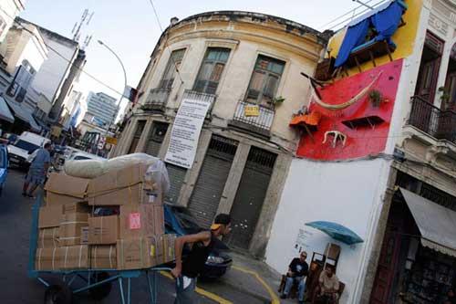 巴西是20国集团中快乐指数最高的国家。这幅图片是一位巴西艺术家和他的兄弟在他们的房屋墙壁上展示他们的作品。