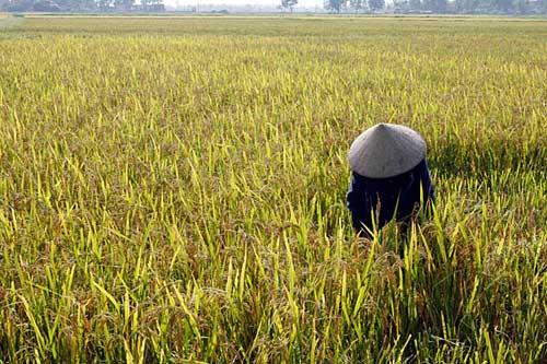 一名农民在河内附近的村庄农田收割。越南在今年的前5个月出口大米约296万吨,比去年增长了62%,越南民众的平均寿命达到73.7岁。
