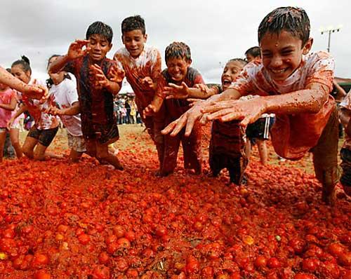 哥伦比亚的孩子们在一年一度的“番茄大战”节日中痛快玩耍。哥伦比亚44%的居民享受免费的医疗保险,70%的能源来自水利发电。波哥大的一项市政计划就称为“快乐计划”,即保证快速的公共交通和10万株沿路树木的栽种。