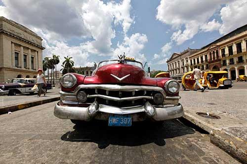 在哈瓦那的出租车在等待他的顾客。古巴虽不是世界上的富国,但人均寿命确是世界上最长的国家之一。