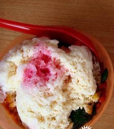 马来西亚吉隆坡的air batu campur是“水石混”。这种混食物实际上就是刨冰。把它们装在塑料碗里,加上炼乳、棕榈糖、烤花生、红豆、罐装玉米以及黑色的果冻粒儿。美妙无穷!!