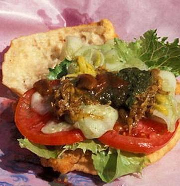 如果在热带海域游泳你会担心鲨鱼出现,那么尝尝这种油炸三明治;油炸的面包中间夹着滴油的鲨鱼肉,淋上罗望子酱汁,美味的沙滩小吃,可口的加勒比啤酒,让人留恋..