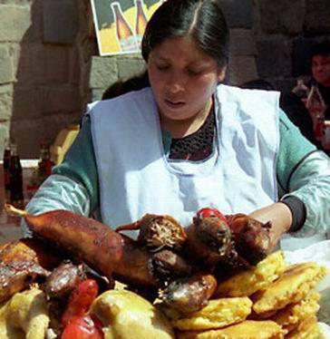 如果你童年时曾养过天竺鼠做宠物,但你绝没有吃过。这些动物被整只放在火上叉烤,看着当地人撕咬着冒烟但又美味的天竺鼠,鼠头、鼠爪全都在,可能会让人有些不安。