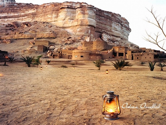 这个酒店位于埃及的锡瓦绿洲上的白山脚下,拥有在世界上罕有的朴素原始的自然风光和舒适的温泉。因为有自然的屏障,使它冬暖夏凉。这个酒店没有从外面运送建筑材料,充分采用了当地产的沙石,酒店的一部分甚至就在山洞中。这个酒店从不供电,由此也可以大量减少二氧化碳的排放,所以游客可以在晚上尽情享受灯笼和烛光带来的乐趣。