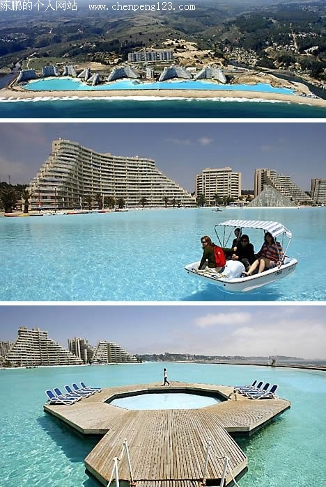 如果你喜欢在游泳池里绕圈游泳的话,那么在进入这个游泳池之前,你可能会需要喝一些运动型饮料以储存能量。这个游泳池长1000多码,占地20亩,深水区有115英尺,容量大约是6600万加仑的水。上面说的游泳池在智利,是世界上最大的海边泳池并获得吉尼斯纪录。这所游泳池的建造花了五年的时间,耗资10亿英镑,而每年的维护费都高达200万英镑。里面蔚蓝的水是如果地清澈,你甚至可以看到深水区的最底部。这所游泳池甚至使世界第二的游泳池相形见绌(Orthlieb),Orthlieb在摩洛哥,它只有150码长,100码宽。奥林匹克游泳池的标准大约是50码长、25码宽。