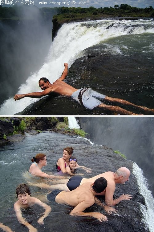 维多利亚瀑布是在赞比亚和津巴布韦之间的边界上,它有360英尺高。在顶部是一个天然岩石池,被称为魔鬼池,里面的水相对比较平静。从9月到12月,在水位低的时候,您可以在里面游泳。这些照片一定会令你有点紧张,或者说很紧张。
