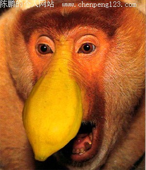 是东南亚加里曼丹的特有动物。这们的鼻子大得出奇,其中雄性猴子随着年龄的增长鼻子越来越大,最后形成像茄子一样的红色大鼻子。它们激动的时候,大鼻子就会向上挺立或上下摇晃,样子十分可笑。而雌性的鼻子却比较正常。但鼻子的用途并不是很清楚,有可能是性选择的结果。