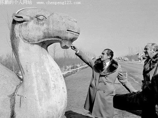 1972年2月24日,时任美国总统尼克松在北京十三陵游玩