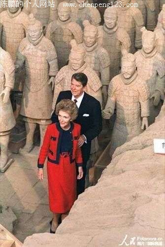 1984年4月29日,美国总统里根和夫人在西安参观兵马俑