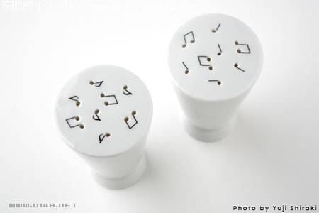 音符调味瓶,盐和胡椒粉从音符的小孔里倒出来,很巧妙的设计。
