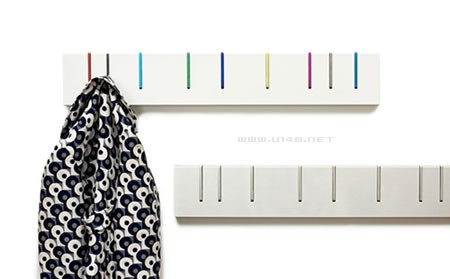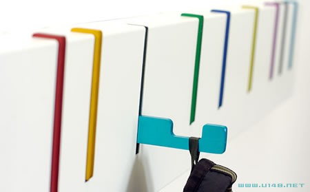 一款很不错的衣架,不用的时候丝毫看不出是挂衣钩来,用的时候把衣钩拉下来就可以了,Design by David Scott