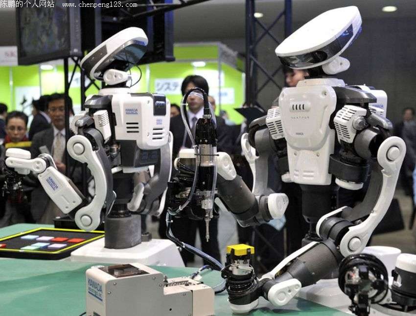 由日本机器制造商川田工业公司最新研发,安装了15个传动装置和2个摄像头的机器人Nextage与参观者见面。