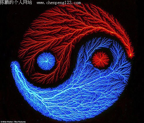 除了基本的闪电外形外,赫克曼还可以制造出星星、蝴蝶、橡树以及太极八卦的阴阳图案。制造太极闪电图时,首先要将电流注入玻璃板内部,然后按照赫克曼先前雕刻好的路径突然爆发。