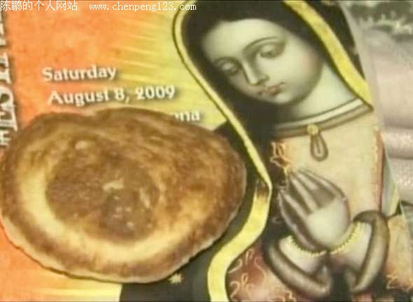 美国亚利桑那州的比安卡-洛佩兹声称,她在一片薄饼上发现了圣母玛利亚的面容。洛佩兹表示,这一神圣的图像将会给她的家庭带来平安与安慰。