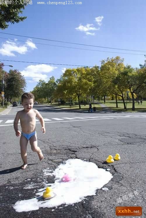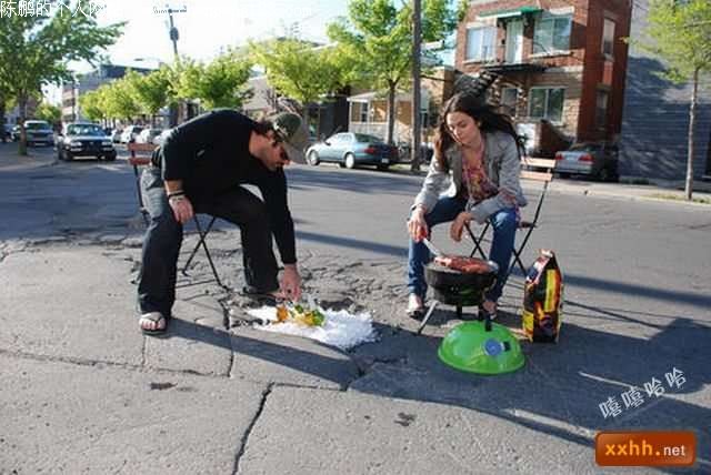 这是由克劳迪亚和达维德鼓捣的一个摄影项目,把很多生活中的场景挪到马路上的一个小坑上,你还别说,挺好玩的!