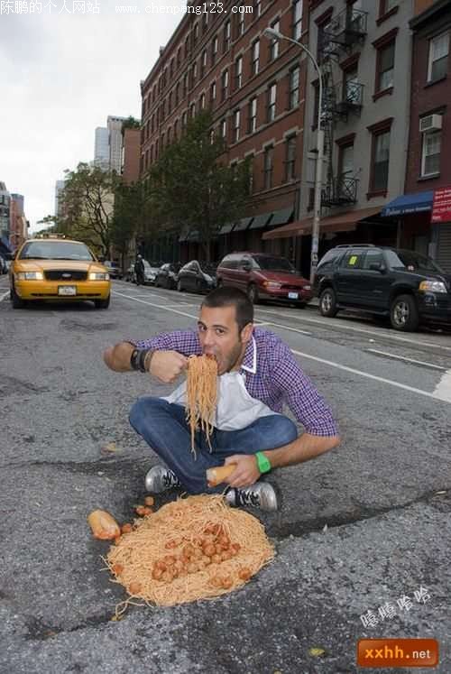 这是由克劳迪亚和达维德鼓捣的一个摄影项目,把很多生活中的场景挪到马路上的一个小坑上,你还别说,挺好玩的!