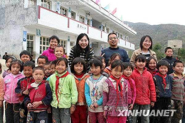 这是彭旸(后排左二)等在六盘水市六枝特区梭戛乡沙子小学支教的志愿者们与学生们合影(2009年11月13日摄)。新华社发 (黄蜀锦 摄)