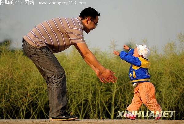 这是李拥兵和孩子在田间玩耍,享受浓浓亲情(2009年5月3日摄)。新华社记者 李晓果 摄