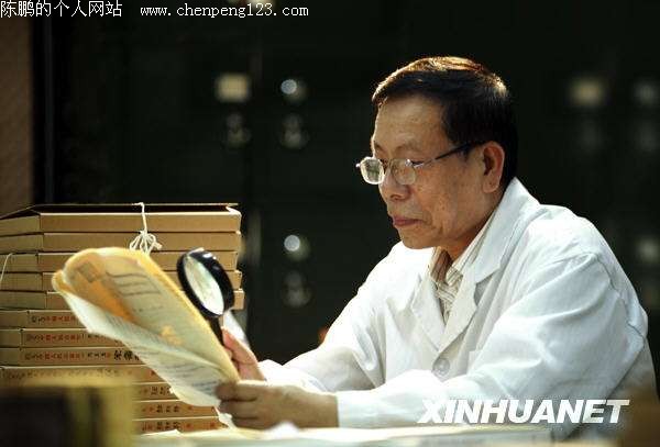 20多年来,解放军优秀档案专家刘义权为国家征集和接收了83万多件珍贵的军事档案。借助这些档案,解放军档案馆帮助有关单位和个人,查找了近万名我军失踪和牺牲人员下落线索。就在确诊为直肠癌晚期后,他还坚守在中美军事档案合作一线,鉴定了5万多件志愿军历史档案。2009年10月11日,刘义权同志先进事迹报告会在北京人民大会堂举行。这是刘义权在鉴定档案(2009年7月9日摄)。新华社发 (王安民 摄)