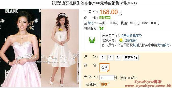 现在山寨礼服,一件仅售100元,超低的价格吸引了不少准新娘,一个月内疯卖762件。随着进入下半年婚庆高峰,以及单位聚会的增多,婚纱礼服也进入了销售高峰,而今年,越来越多的人接受网购婚纱和礼服,各款明星穿过的山寨版婚纱礼服尤其热卖,相比明星们身上动辄几万,甚至上百万元的礼服,这些山寨版只要几百元,却能过一把明星瘾。