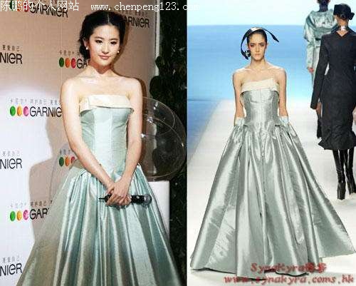 刘亦菲 “山寨礼服”女王。10月,刘亦菲出席某品牌发布会时所穿的一身淡粉绿色礼服,与某名牌服装秀的衣服有90%的相似度。11月7日举行的时尚庆典活动上也是山寨的礼服。另外刘亦菲出席今年某慈善夜时所穿的礼服,也是周慧敏在广告代言里穿过的旧衣服。于是网友封其为“山寨礼服王”,但对她仿制衣服的水准表示质疑:刘亦菲总是喜欢把原版礼服中最具设计感的部分改掉。