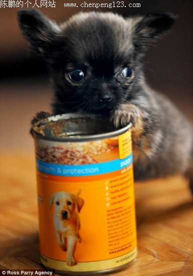 这只小狗与一只罐头盒差不多大小