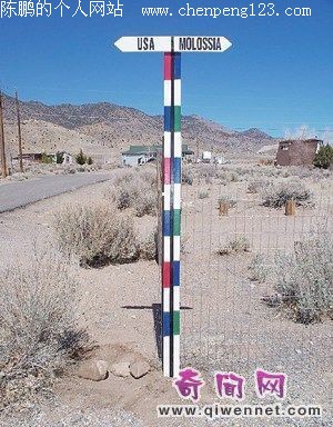在美国内华达州的沙漠地带,有一个自称主权独立的“国中之国”——“摩洛希亚共和国”。根据其政府网站的资料显示,该国成立于1977年,面积仅为0.025平方公里,四周皆被美国国土包围,目前总人口仅为6人,堪称“世界第一袖珍国”。尽管如此,“摩洛希亚”却声称拥有独立的宪法、海军、银行、货币、邮局、电信局,甚至还是第一届“微型国家奥林匹克”的承办者。不过由于它迄今尚未与世界上任何国家建立正式的外交关系,因此也不被国家承认。