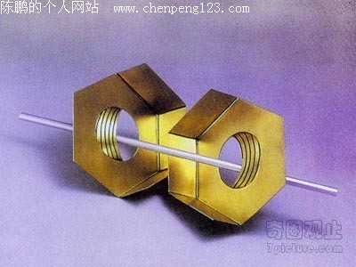 直钢棒是怎样神奇地穿过这两个看似成直角的螺帽孔的吗?