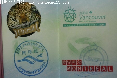 左上的巴西国家馆印章其实是一张贴纸,有好几种图案供游客选择。