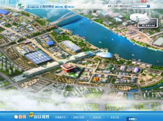 园区揽胜就是利用数字三维技术展示世博园区、展馆和馆内展项的频道。打开网上世博会主页,右上方一艘飞艇掠过,点击它就进入园区揽胜。进入园区揽胜后,只要用鼠标拖拽数字立体地图,上海世博会5.28平方公里规划区域上的建筑就可一览无余。