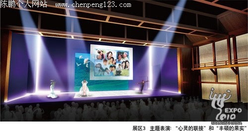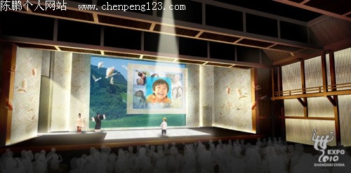 在日本馆,专门辟有一座可容纳500名观众的传统木制剧场。在2010年5月1日至10月31日世博会期间,这里每天都要上演大约35场反映日中友好和日中共同拯救朱鹮活动的音乐剧。音乐剧大约20分钟一场,由三组演员循环演出,半年累计演出6400多场。