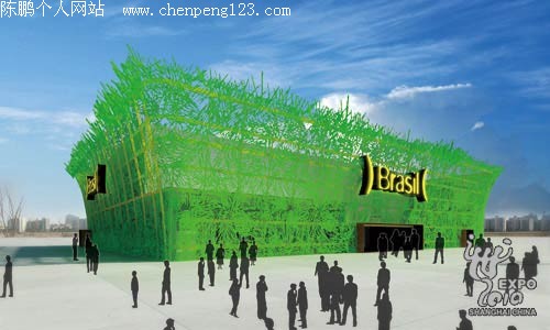 巴西馆的设计灵感来自北京奥运会的鸟巢,展馆使用可回收木材作为装饰材料,是一个“碧绿的鸟巢”,也宛如繁密茂盛的热带丛林。